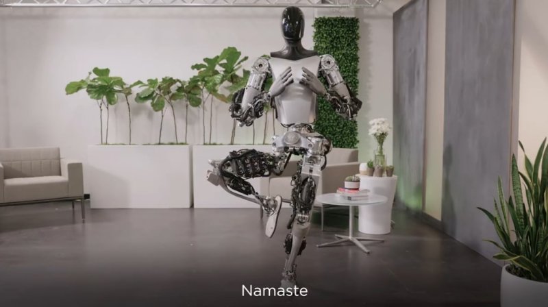 영상에서 옵티머스는 단순한 반복적인 작업을 수행하는 것 뿐만 아니라 한 발로 균형을 잡아 요가를 하거나 인도에서 인사를 할 때 주고받는 "나마스테" 동작도 선보였다.