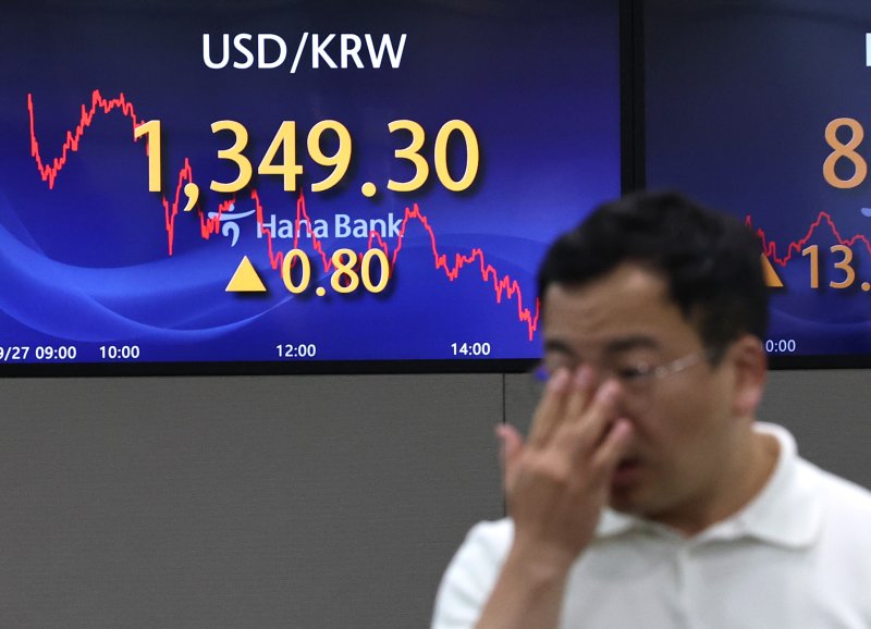 지난 7월 평균 1283.22원이었던 환율은 지난달 1321.54원으로 한 달 새 3.0% 올랐다. 이날 환율은 전날보다 0.8원 오른 1349.3원에 마감하면서 심리적 저항선인 1350원 턱밑까지 올랐으며, 장 초반에는 1356원까지 오르면서 전날의 연고점을 다시 경신했다.
