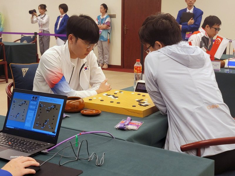바둑 남자 대표팀은 30일 오후 중국 항저우의 치위안 체스홀에서 열린 대회 바둑 남자 단체전 예선 3차전에서 중국에 4-1로 승리했다.