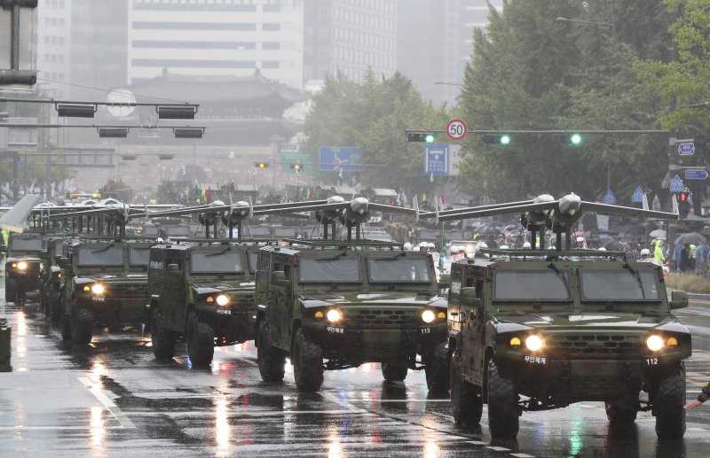 [서울=뉴시스] 옥승욱 기자 = 지난 9월 26일 건군 75주년 국군의 날 행사에서 한국형 중고도 무인기(MUAV)가 공개돼 정찰용 무인항공기 위용을 과시했다.