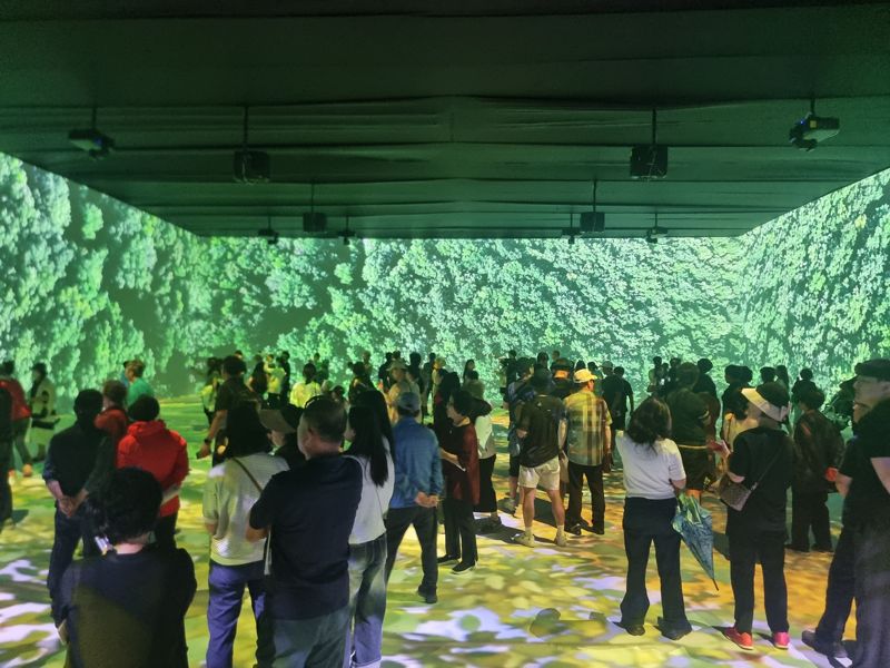 2023강원세계산림엑스포 조직위에 따르면 높이 6m, 길이 70m 규모의 대형 미디어아트 영상은 정면과 양 옆면, 그리고 바닥을 활용한 프로젝트 매핑기법을 적용해 화려하고 웅장한 영상과 음향으로 관람객들에게 몰입감을 안겨주고 있다.