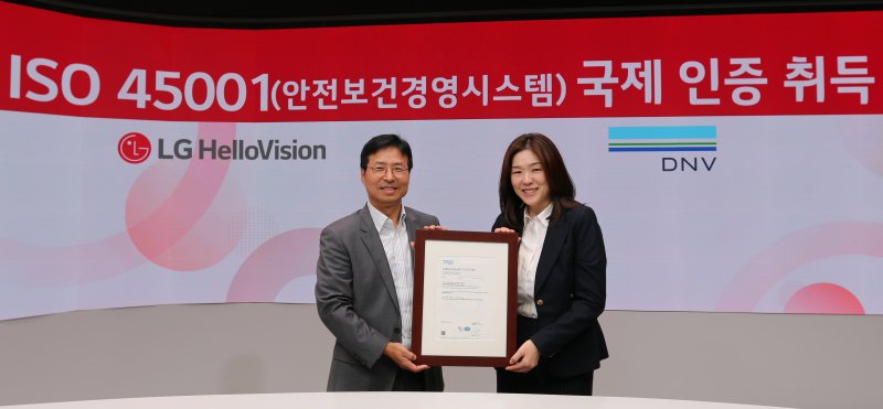(서울=뉴스1) 윤지원 기자 = LG헬로비전(037560)은 글로벌 인증기관 '디엔브이 비즈니스어슈어런스 코리아'(DNV)로부터 안전보건경영시스템 국제표준 'ISO 45001' 인증을 취득했다고 5일 밝혔다.