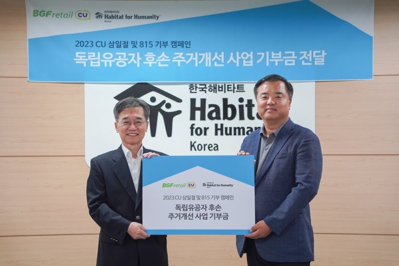 (서울=뉴스1) 서미선 기자 = CU를 운영하는 BGF리테일(282330)은 독립유공자 후손 주거환경 개선을 위한 기부금을 국제 주거복지 비영리단체 한국해비타트에 전달했다고 5일 밝혔다.