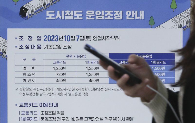시는 당초 지하철 기본요금을 300원 인상할 계획이었으나, 시민들의 물가 상승 부담 등을 고려해 나머지 150원은 내년 하반기에 추가로 올리기로 했다. 앞서 지난 8월 버스 기본요금이 기존 1200원에서 1500원으로 300원 인상된 바 있다.