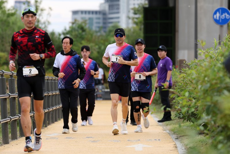 오 시장은 8일 오전 잠실한강공원과 수중보 일원에서 열린 '2023 한강 르네상스 페스티벌 아쿠아슬론 대회'에 참가했다.
