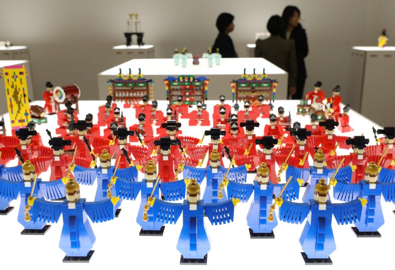 [서울=뉴시스] 황준선 기자 = 11일 오후 서울 중구 모리함 전시관에서 열린 '콜린진의 역사적인 레고' 전시회에 종묘제례악을 레고로 형상화한 작품이 전시돼 있다. 2023.10.11. hwang@newsis.com [서울=뉴시스] 류현주 기자 = 11일 오후 서울 중구 모리함 전시관에서 열린 '콜린진의 역사적인 레고' 전시회에 종묘제례악을 레고로 형상화한 작품이 전시돼 있다.