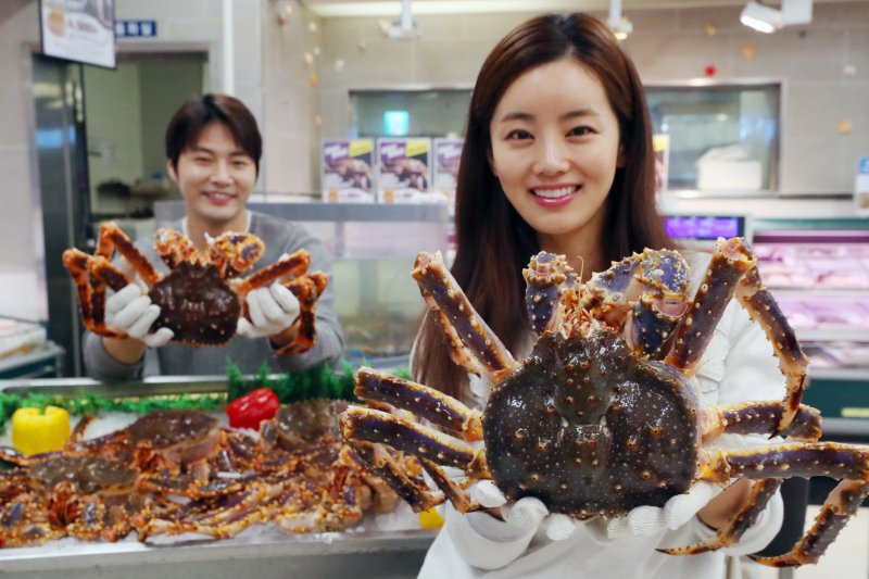 대형마트 업계는 킹크랩 할인 행사를 진행하며 소비자 먹거리 가격 부담 덜기에 나선다.