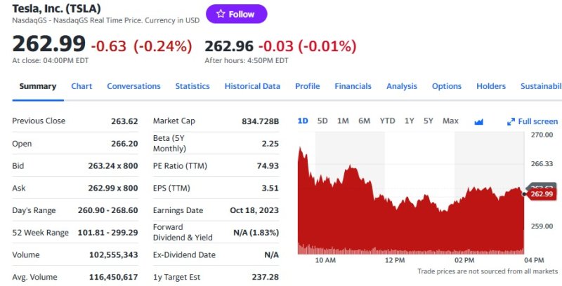테슬라는 전거래일보다 0.24% 하락한 262.99 달러를, 리비안은 1.37% 하락한 19.37 달러를, 루시드는 1.84% 하락한 5.34 달러를, 니콜라는 3.50% 하락한 1.38 달러를 각각 기록했다.