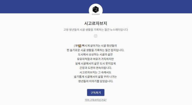 전북 고창군의 청년 모임인 청년벤처스가 발행하는 월간 잡지 '시고르자브지'에 담긴 청년들의 솔직한 시골 생활이다.