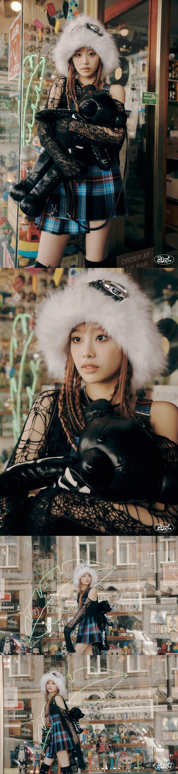콘셉트 포토 속 츄는 하얀색의 에스키모 모자 위에 고글을 쓴 모습이다. 그물 소재로 된 블랙 상의와 체크무늬 스커트를 입은 채 다채로운 포즈를 취하고 있다. 뼈 무늬 모티브의 프린트가 붙여진 유니크한 블랙 곰 인형으로 된 가방을 소품을 활용하고 있어 궁금증을 자아낸다.