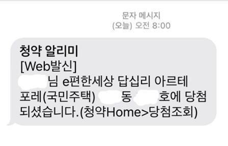 (서울=연합뉴스) 권혜진 기자 = 무주택자인 A씨는 지난 13일 오전 한국부동산원으로부터 청약당첨 문자를 받았다.