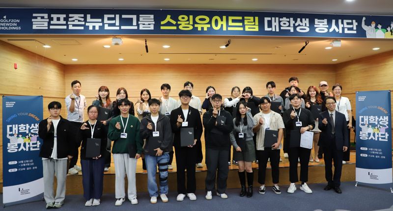 [파이낸셜뉴스] 골프존뉴딘그룹(회장 김영찬)은 지난 13일 골프존타워서울 본관에서 ‘2023 스윙유어드림 대학생 봉사단’ 발대식을 진행했다고 16일 밝혔다.
