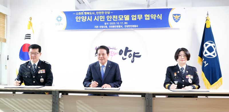 시는 17일 시청 접견실에서 동안·만안경찰서와 이상동기 범죄 예방 및 대응체계 구축을 위한 '안양시 시민안전모델' 업무협약을 체결했다.