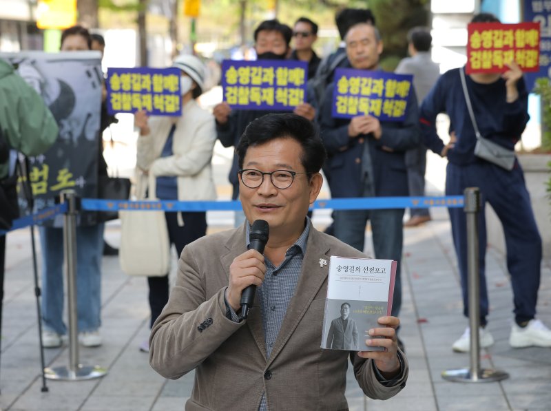 송 전 대표는 이날 출간된 '송영길의 선전포고'에서 “윤석열 정권이 검찰이라는 칼을 마구잡이로 휘두르고 있다면, 나는 법이라는 무기와 국민이라는 방패로 그에 대응할 것”이라고 말했다.