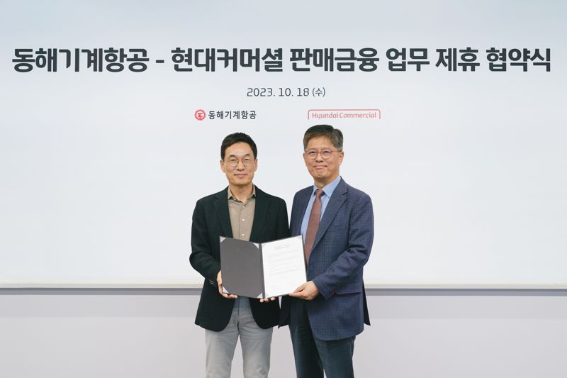 [파이낸셜뉴스] 현대커머셜이 동해기계항공과 전용 금융상품을 출시하는 등의 내용을 담은 '판매금융 업무 제휴 협약'을 체결했다고 19일 밝혔다.