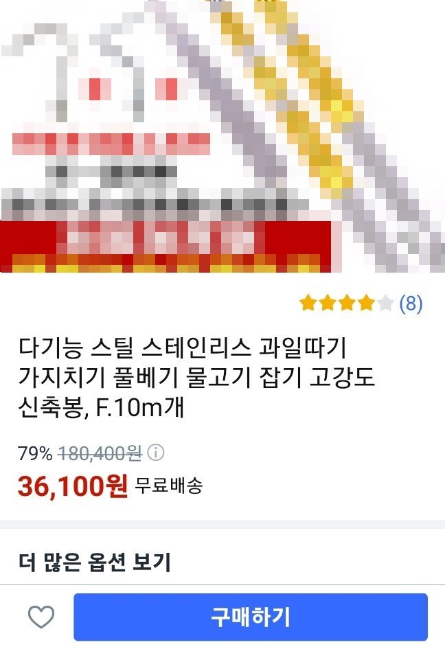 19일 제보자 A씨와 쿠팡 등에 따르면 A씨는 지난달 25일 쿠팡에서 풀이나 가지를 베는 용도의 스테인리스 고강도 신축봉을 구매했다.
