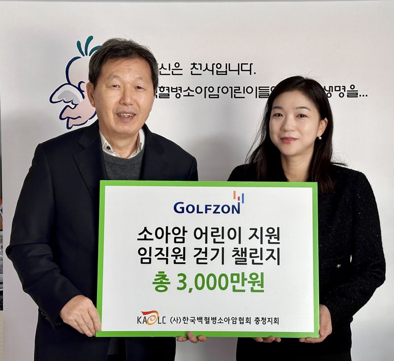 한국백혈병소아암협회 충청지회에서 진행된 기부금 전달식에는 골프존 김재희 실장을 비롯해 한국백혈병소아암협회 충청지회 박우성 회장, 정인숙 사무국장 등 협회 관계자들이 참석해 소아암 투병 어린이들의 건강한 성장과 미래를 위한 따듯한 마음을 나누는 자리를 가졌다.