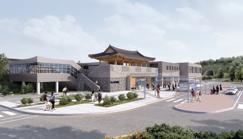 괴산의 첫 철도역인 313역은 지상 2층(건축 전체면적 1604㎡) 규모의 한옥 양식으로 짓고 있다. 전체 길이 93㎞의 중부내륙철도는 내년 12월 개통한다.