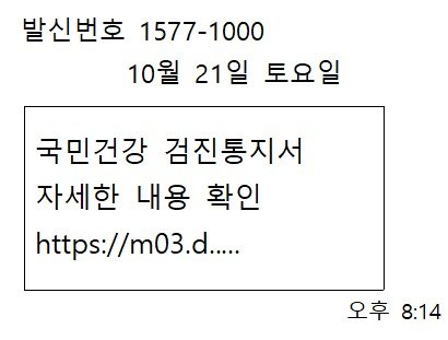 (서울=뉴스1) 천선휴 기자 = '발신번호 1577-1000. 국민건강 검진통지서 자세한 내용 확인은…'