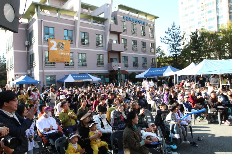 부산뇌병변복지관은 지난 21일 '아름다운 동행'이라는 주제로 개관 20주년 기념식 및 문화행사를 열었다고 23일 밝혔다. 이날 행사에는 이용자, 지역주민 등 900여명이 참석했다.