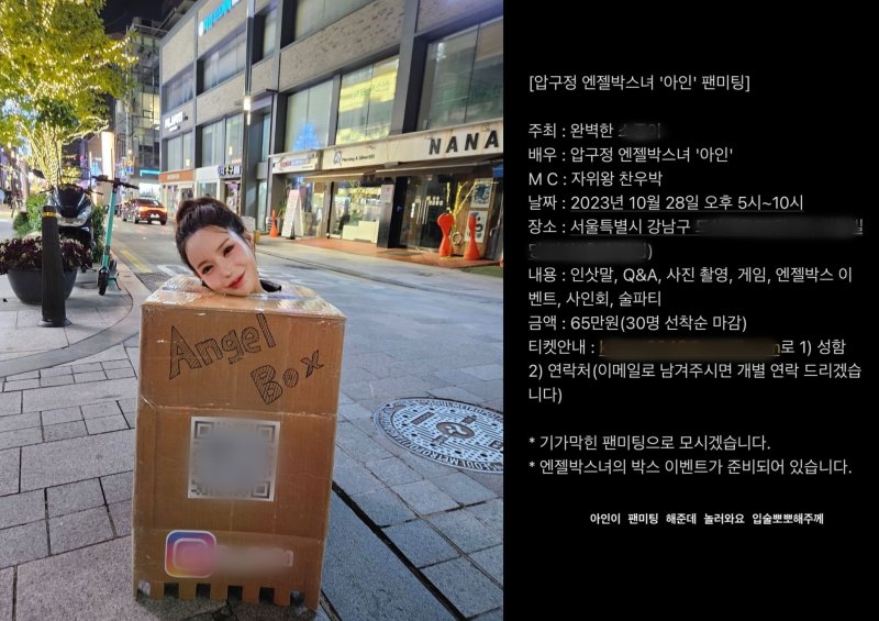 지난 23일 '압구정 박스녀' 아인은 자신의 SNS에 팬미팅 관련 공지를 올렸다.