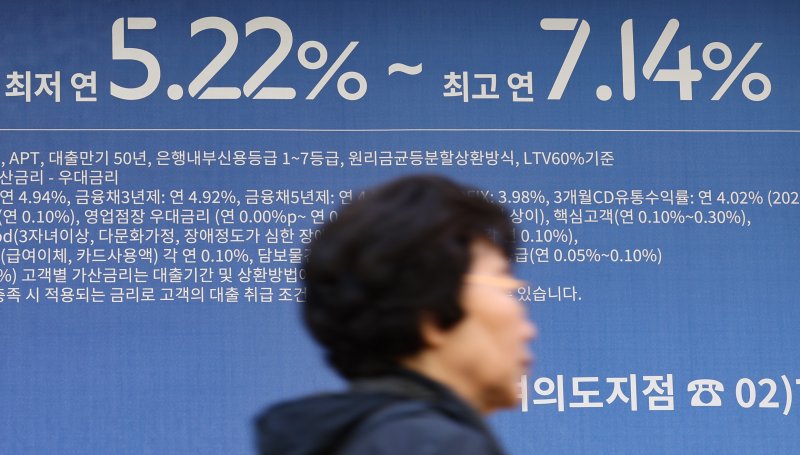 25일 금융권에 따르면 5대 시중은행(KB국민·신한·하나·우리·NH농협)의 주택담보대출 변동금리(신규코픽스 연동)는 23일 기준 연 4.56~7.145%로 상단은 9개월여만에 7%를 다시 넘어섰고, 하단은 드물게 보이던 3% 금리가 자취를 감췄다.