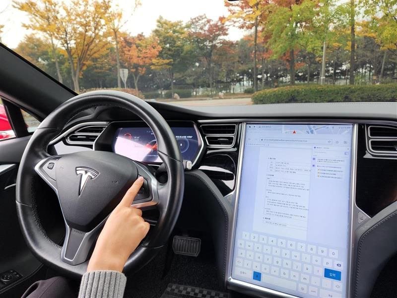 [서울=뉴시스] 김경택 기자 = 오늘부터 전기차 테슬라 사용자들은 차 안에서도 '폴라리스 오피스' 서비스를 이용할 수 있다. 차량 내 터치스크린(디스플레이 화면)을 통해 기본적인 문서 편집뿐만 아니라 음성인식을 활용한 생성형 AI(인공지능) 기능까지도 제공한다.