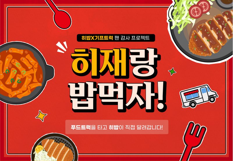 '히재랑 밥 먹자'라는 주제로 진행되는 이번 이벤트는 프로먹방러로 종횡무진 활약 중인 유튜버 히밥이 '그동안 팬들에게 받은 사랑을 보답하자'라는 취지에서 행복을 전하는 브랜드 기프트럭과 손잡고 사연자와 함께 밥을 먹는 시간을 마련한다.
