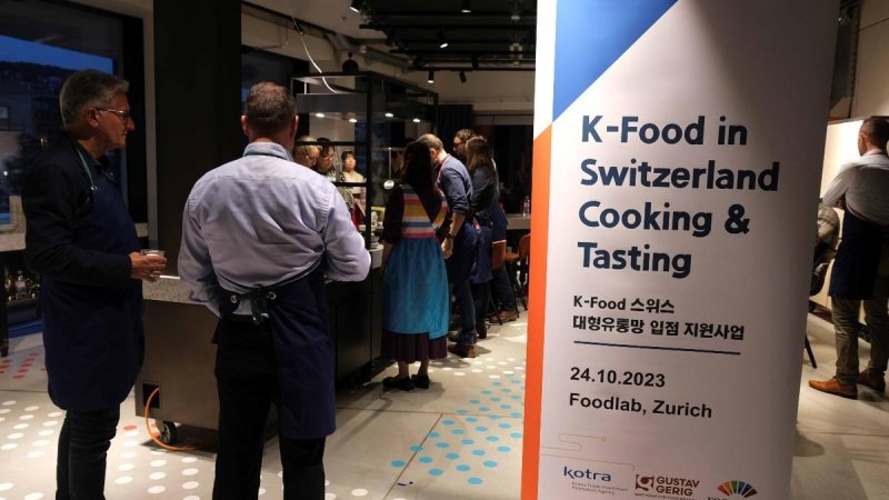 스위스 최대 유통망 공략 나선 K푸드…간편조리품으로 눈도장코트라·한국식품산업클러스터진흥원, 취리히서 한국식품 소개행사