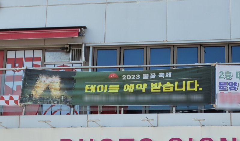 지난 1일 찾은 부산 수영구 광안리해수욕장. 해변을 따라 쭉 늘어선 음식점과 카페는 저마다 '불꽃축제 자리 예약 받습니다'라는 문구가 적힌 현수막을 매장 앞에 내걸고 예약석 문의를 받고 있었다.