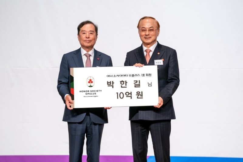5일 애터미에 따르면 사랑의 열매 아너소사이어티 브랜드인 '오플러스(Opulus)'는 1억원 이상을 기부한 회원들의 모임인 아너소사이어트 가운데에서도 10억원 이상의 초고액 기부자들의 모임이다. 오플러스 제1호 회원으로 선정된 박 회장은 배우자와 아들, 며느리, 손자까지 3대가 아너소사이어티에 가입한 '패밀리 아너소사이어티 회원'이다.