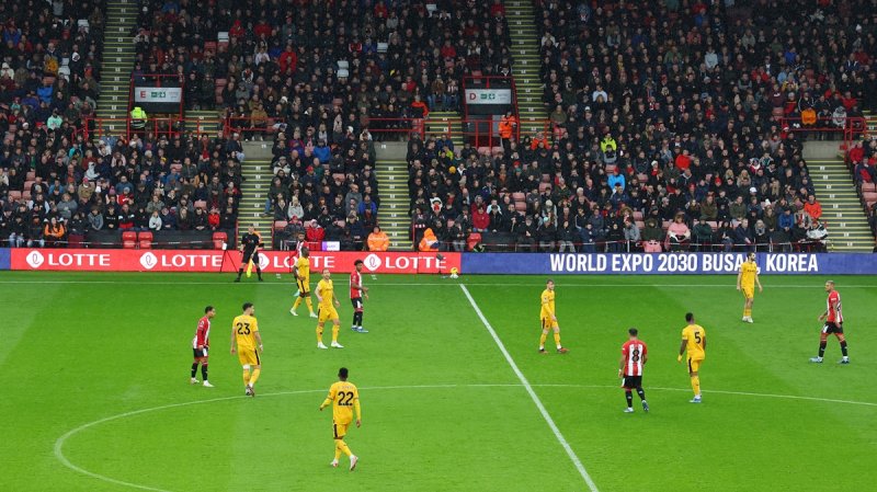 [서울=뉴시스] 이준호 기자 = 롯데는 2030 세계박람회 개최지 결정 투표를 20여일 앞둔 4일부터 27일까지 영국 프리미어리그(EPL) 경기장에 '2030 부산 엑스포 유치'를 기원하는 광고를 선보인다고 6일 밝혔다.