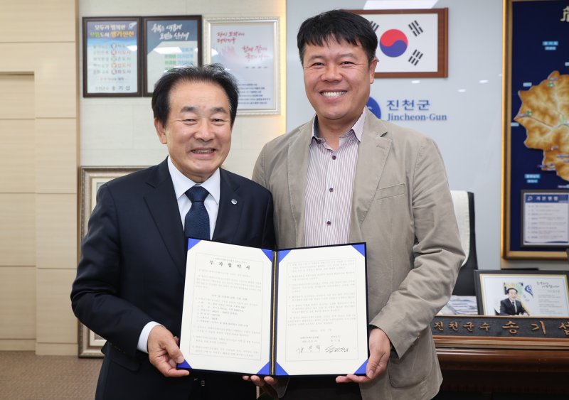 진천군은 7일 ㈜에이치케이글로벌과 충북혁신도시 내 블루웨이브파크 조성과 관련한 250억원 규모의 투자협약을 했다.