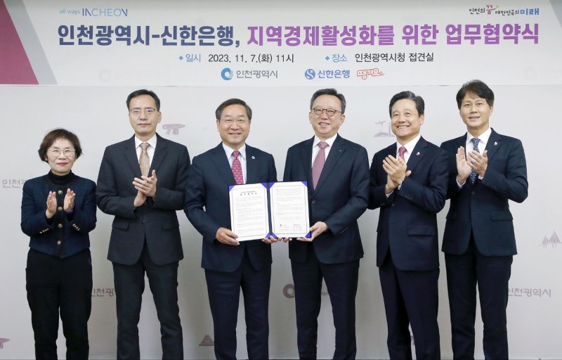 [서울=뉴시스] 이정필 기자 = 신한은행은 인천시와 지역경제 활성화를 위한 전략적 업무협약을 7일 체결했다.