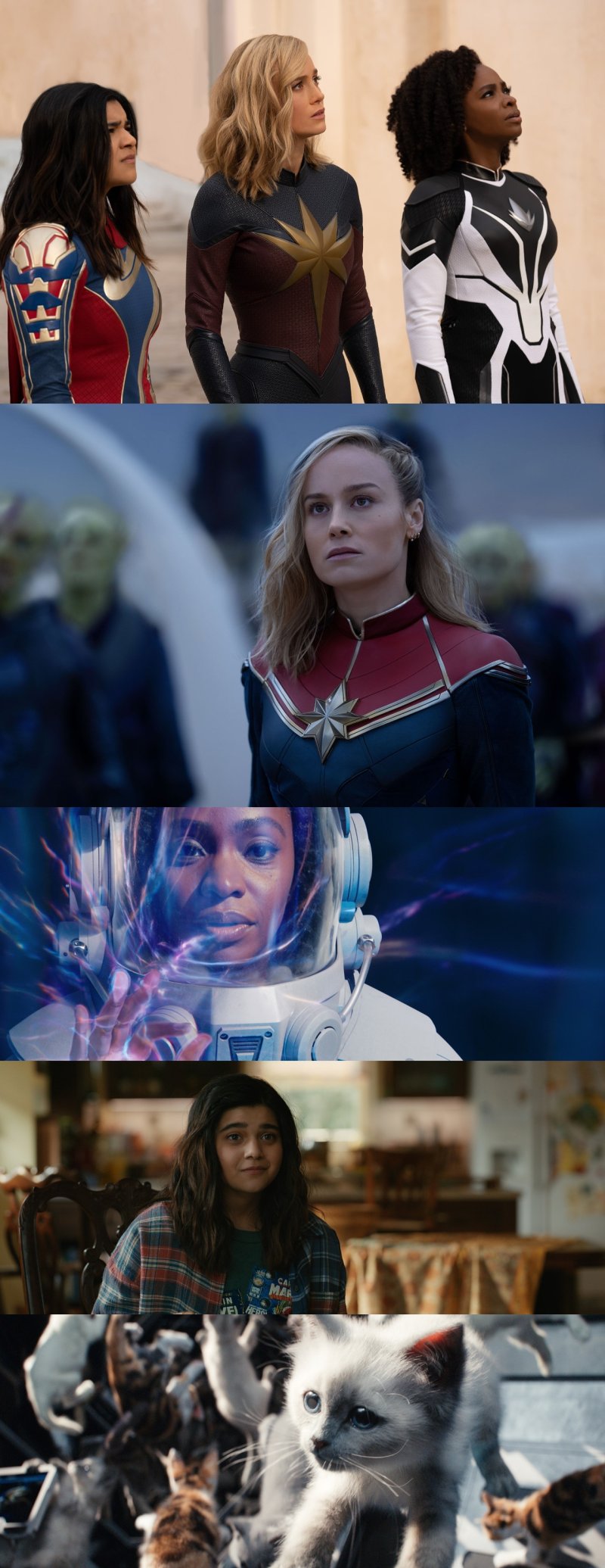 그럼에도 불구하고 영화는 다소 지루한 감을 주는 게 사실이다. 일단 세 히어로의 능력이 뒤바뀐다는 가장 중요한 설정이 영화 속 액션 분야에서 특별한 역할을 하지 못한다. 관객들의 입장에서는 이 같은 위기를 세 인물이 어떻게 기회로 바꿔 '신박한' 해결을 해내는지 보게 될 것으로 기대하겠으나, 막상 영화에서 그 부분은 그다지 중요하게 다뤄지지 않는다. 캐릭터들의 매력이나 시너지도 아쉽다. 캐럴 댄버스와 모니카 램보 사이의 갈등은 피상적이고, 시종일관 방방 떠 있는 카말라 칸은 몰입을 방해한다. 이전 마블 영화들이 마블 코믹스 팬들 뿐 아니라 대중의 지지를 얻을 수 있었던 이유는 매력적이고 다채로운 캐릭터와 그들이 빚어내는 현실적인 관계성과 시너지에서 왔다. '더 마블스'는 그런 면에서 아쉬운 점들이 보인다. 러닝 타임 105분. 이날 개봉.