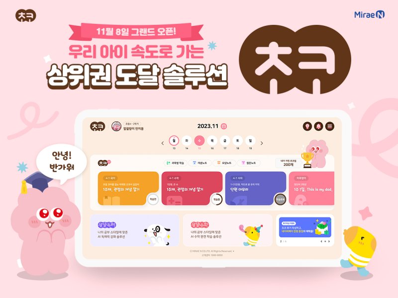 미래엔초코는 초등 전 과목 학습 서비스인 '초코팝'과 인공지능(AI) 기반 맞춤 문해력, 수학 학습 서비스인 '달달독해·수학'으로 구성됐다.