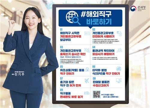 (세종=연합뉴스) 박원희 기자 = 관세청은 연말까지 해외 직구(직접구매) 제도의 올바른 이용 방법을 알리는 '해외직구 바로하기' 캠페인을 실시한다고 9일 밝혔다.