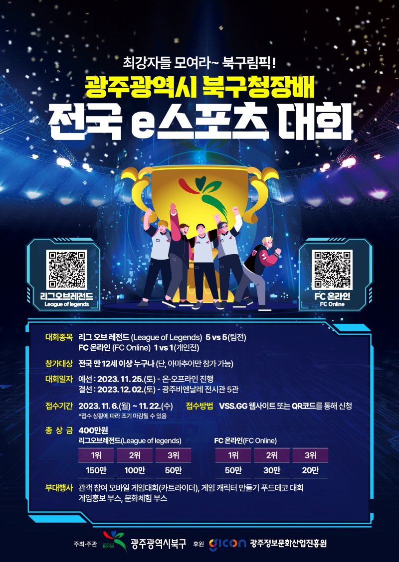 (광주=뉴스1) 이수민 기자 = 광주 북구는 12월2일 광주비엔날레전시관 5관에서 '2023 광주 북구청장배 전국 e스포츠대회'를 개최한다.