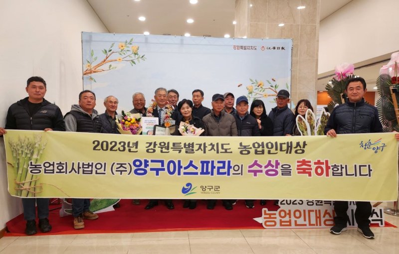이날 수상한 양구아스파라는 2017년 양구군에 설립, 현재 15개 농가가 함께 아스파라거스를 재배하고 있다.