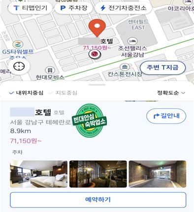 '티맵 숙소예약'에서 안심마크 우선 표출