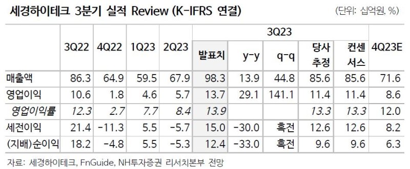 이규하 NH투자증권 연구원은 "국내 고객사 폴더블 스마트폰 판매 둔화에도 세경하이테크는 비용 절감 등을 통해 이익률을 크게 개선했다"면서 "향후 마진 개선 흐름이 지속될 것으로 예상돼 실적 전망을 상향 조정한다"고 말했다.