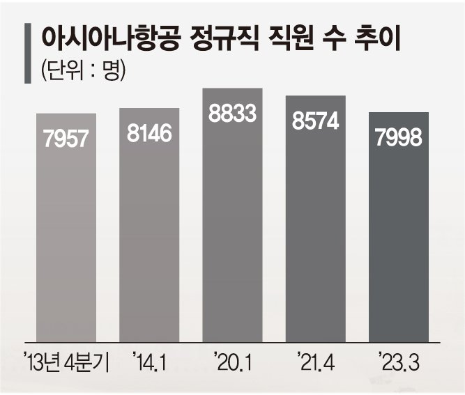 ■아시아나, 정규직 7998명… 10년래 최저
