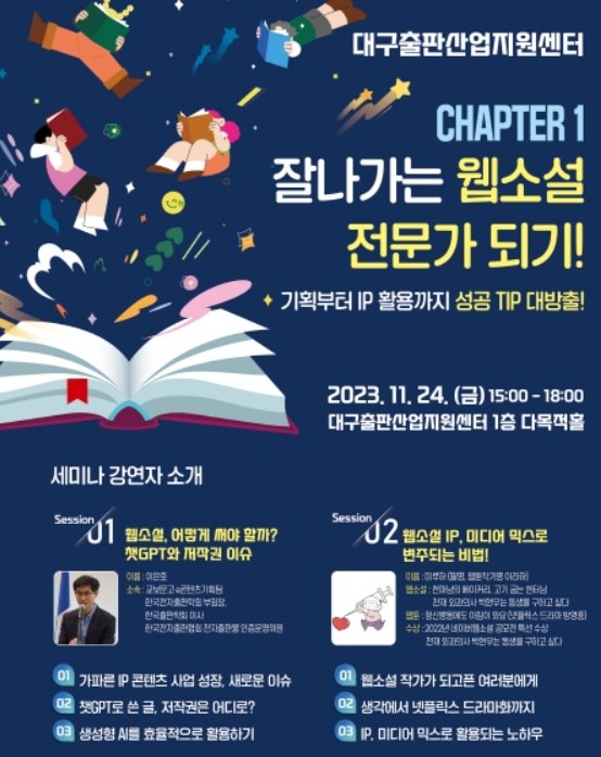 이 세미나는 웹소설 작가와 작가를 꿈꾸는 대구 시민 누구나 참석할 수 있으며 인원은 50명이다.