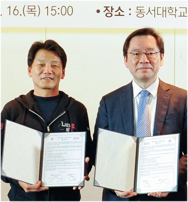 동서대와 네오위즈는 이번 협약을 통해 △상호발전과 공동이익이 되는 사업협력 △인재양성 교육프로그램 공동운영 △게임산업 미래 기술분야에 대한 공동연구 등에 상호협력하기로 뜻을 모으기로 했다.