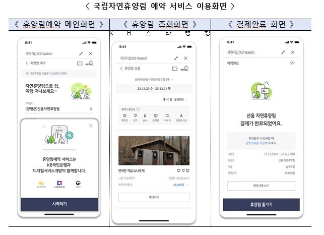 휴양림관리소 예약 서비스는 KB스타뱅킹 앱을 시작으로 다른 민간 앱으로 확대될 예정이다.