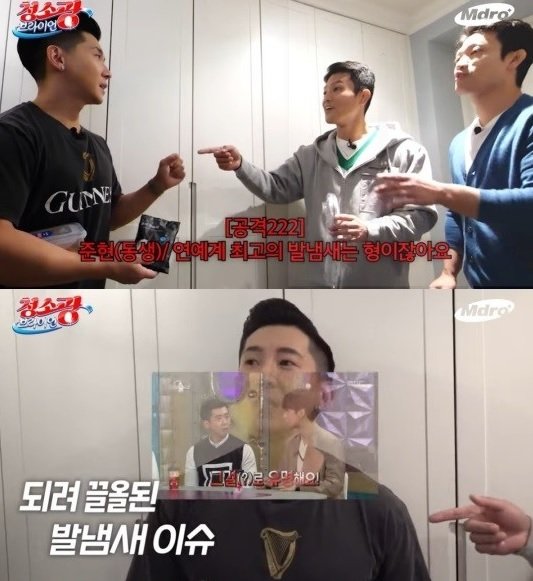 브라이언은 조준호·조준현 형제가 홈파티에 등장하자 일회용 슬리퍼를 건네며 "둘 다 발에 땀 좀 있는 편 아니냐"며 경계했다. 이에 두 사람은 "연예계 최고의 발냄새는 형 아니냐"며 과거 불거졌던 '발냄새 루머'를 소환했다. 이에 브라이언은 "차은우, 차은우 너"라고 발끈해 웃음을 자아냈다.