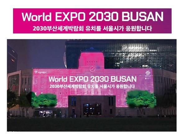 엑스포 개최지가 최종 발표되는 29일 새벽 1시 무렵까지 서울도서관 외벽에는 "월드엑스포 2030 부산(World EXPO 2030 BUSAN), 2030 부산세계박람회 유치를 서울시가 응원합니다"라는 메시지가 표출된다.