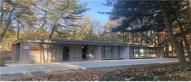 매헌시민의숲 키즈카페도 이러한 기본 방향에 맞춰 공원의 자연환경과 어우러질 수 있도록 목재를 주요 건축자재로 사용하고, 건물 전면부는 통유리로 마감해 개방감을 줬다.