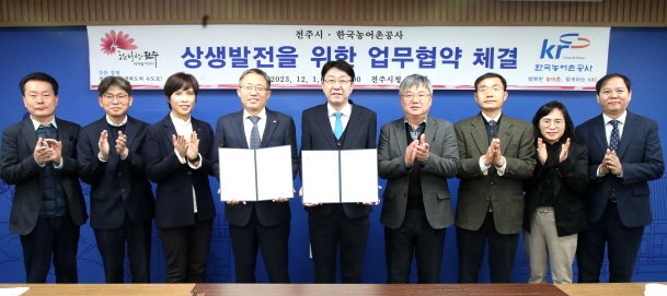 이정문 한국농어촌공사 전북지역본부장은 “공사는 이번 협약을 통해 농로와 농수로, 교량, 저수지 등 전주시 농업생산기반시설을 보다 체계적으로 관리해 영농 편익을 증진시키고, 관광 개발을 통해 지역경제 활성화에 기여하도록 노력할 것”이라며 “앞으로도 지역발전을 위해 전주시와의 상호 협력관계를 긴밀히 유지하겠다”고 밝혔다.
