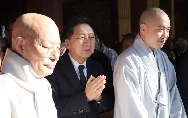 [서울=뉴시스] 김선웅 기자 = 김기현 국민의힘 대표가 1일 서울 종로구 조계사 대웅전에 마련된 전 조계종 총무원장 故 자승스님 분향소에서 조문을 마친 뒤 대웅전을 나서고 있다. 2023.12.01. mangusta@newsis.com [서울=뉴시스] 류현주 기자 = 전 대한불교조계종 총무원장 자승스님의 분향소에 정치계 인사들의 조문 행렬이 이어지고 있다.